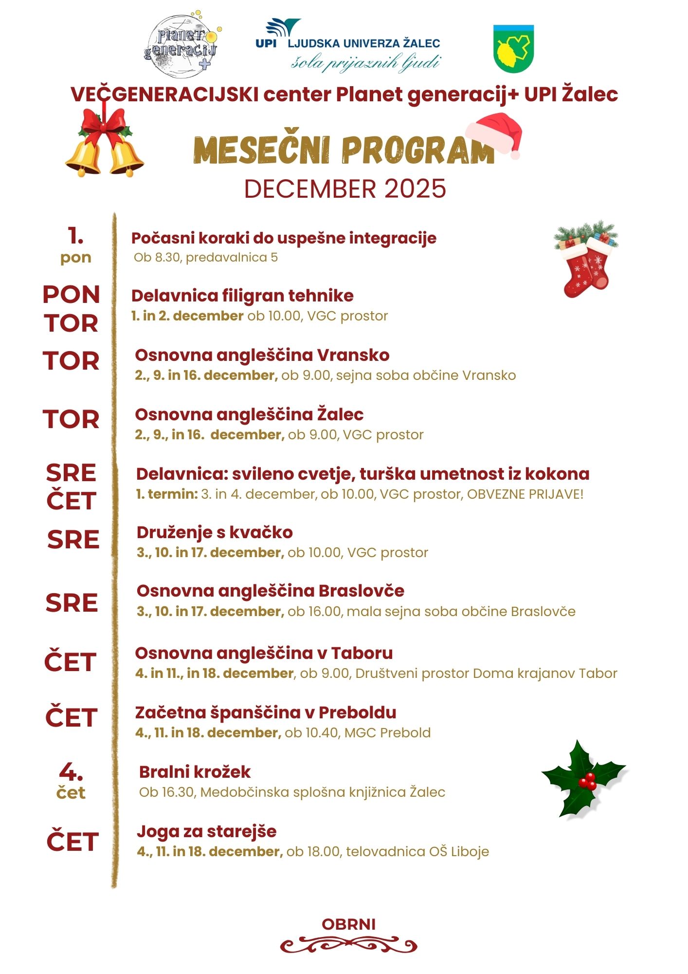 Obiskovalce čaka pester kulturni program, ustvarjalne delavnice, učni kotički, lov na zaklad, zabavne nagradne igre, prigrizki, sladko presenečenje in sproščeno druženje za vse generacije.